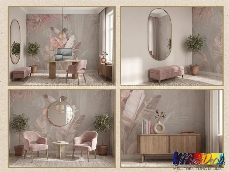 Ngoài nhà ở, mẫu tranh tropical này cũng rất được ưa chuộng trong các quán cafe, homestay, spa hoặc studio. Họa tiết thiên nhiên mang lại cảm giác thư giãn và dễ chịu, giúp không gian trở nên thân thiện và thu hút hơn.