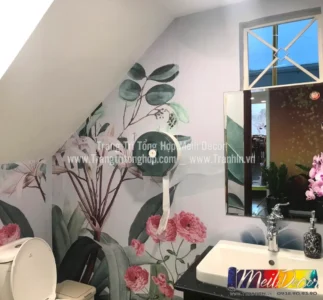 Trong công trình này, Meili Decor đã thi công nhiều mẫu tranh khác nhau, từ hoa lá, phong cảnh thiên nhiên cho đến tranh nghệ thuật hiện đại. Mỗi không gian trong nhà đều được chăm chút bằng những bức tranh phù hợp, vừa hài hòa với nội thất, vừa tạo điểm nhấn độc đáo.