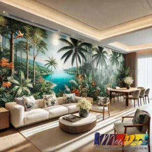 ” Một không gian sống được hoàn thiện với tranh dán tường phong cảnh hiện đại. “