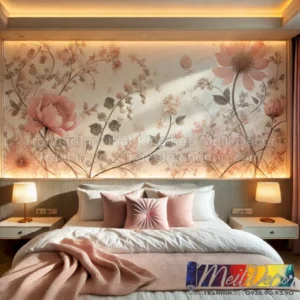 ” Một bức tranh dán tường phòng ngủ với họa tiết lãng mạn dành cho không gian gia đình. “