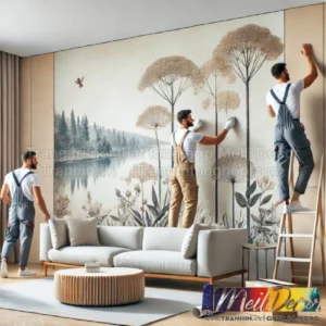 - Thi công: Đội ngũ thi công sẽ làm việc cẩn thận và chính xác, đảm bảo bức tường hoàn thiện hoàn hảo, không bong tróc hay nhăn nheo.