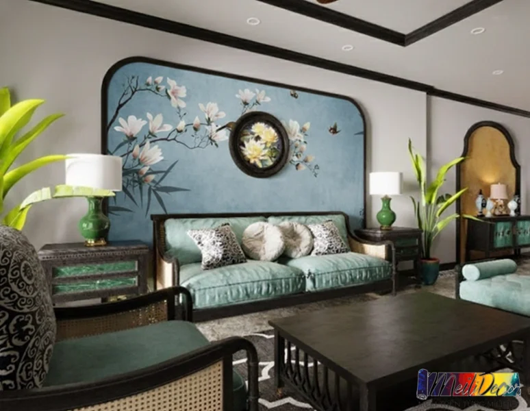 Tranh dán tường Indochine phòng khách – Giải pháp trang trí sang trọng mang đậm dấu ấn Á Đông