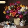 - Tạo không gian ấm cúng: Họa tiết mềm mại, màu sắc hài hòa của tranh sơn dầu giúp phòng ăn trở thành nơi gắn kết các thành viên trong gia đình.