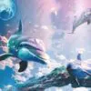 Tranh dán tường phong cách đại dương sử dụng hình ảnh biển cả, sóng vỗ, sinh vật biển như cá, san hô. Những bức tranh này không chỉ làm đẹp không gian mà còn mang lại cảm giác thư thái, dễ chịu.