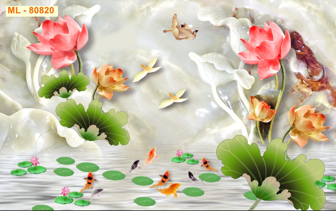 - Tranh giả ngọc cá chép – hoa sen: Biểu tượng của sự may mắn, thành công và viên mãn.