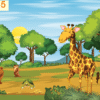 • Tranh mô phỏng một khu vườn thú hoạt hình ngộ nghĩnh, nơi các loài vật thân thiện đang chơi đùa vui vẻ giữa thiên nhiên: