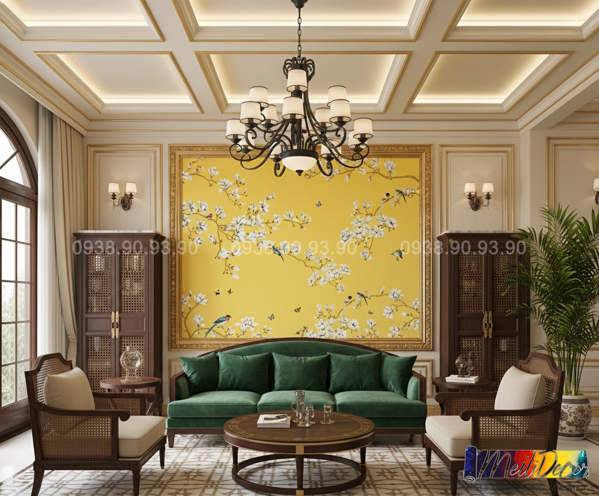 • Phòng khách: Dán tường phía sau sofa hoặc khu vực tiếp khách