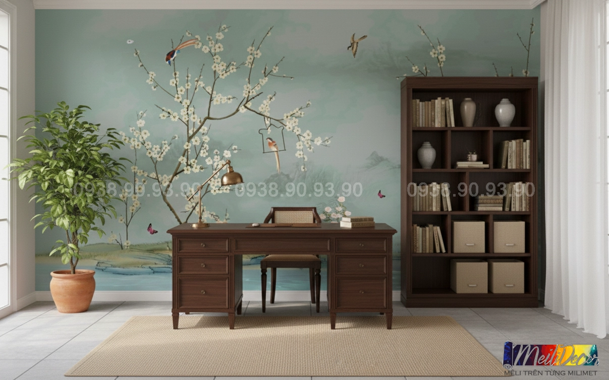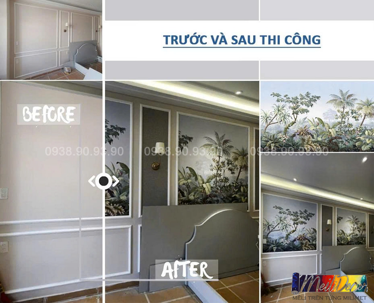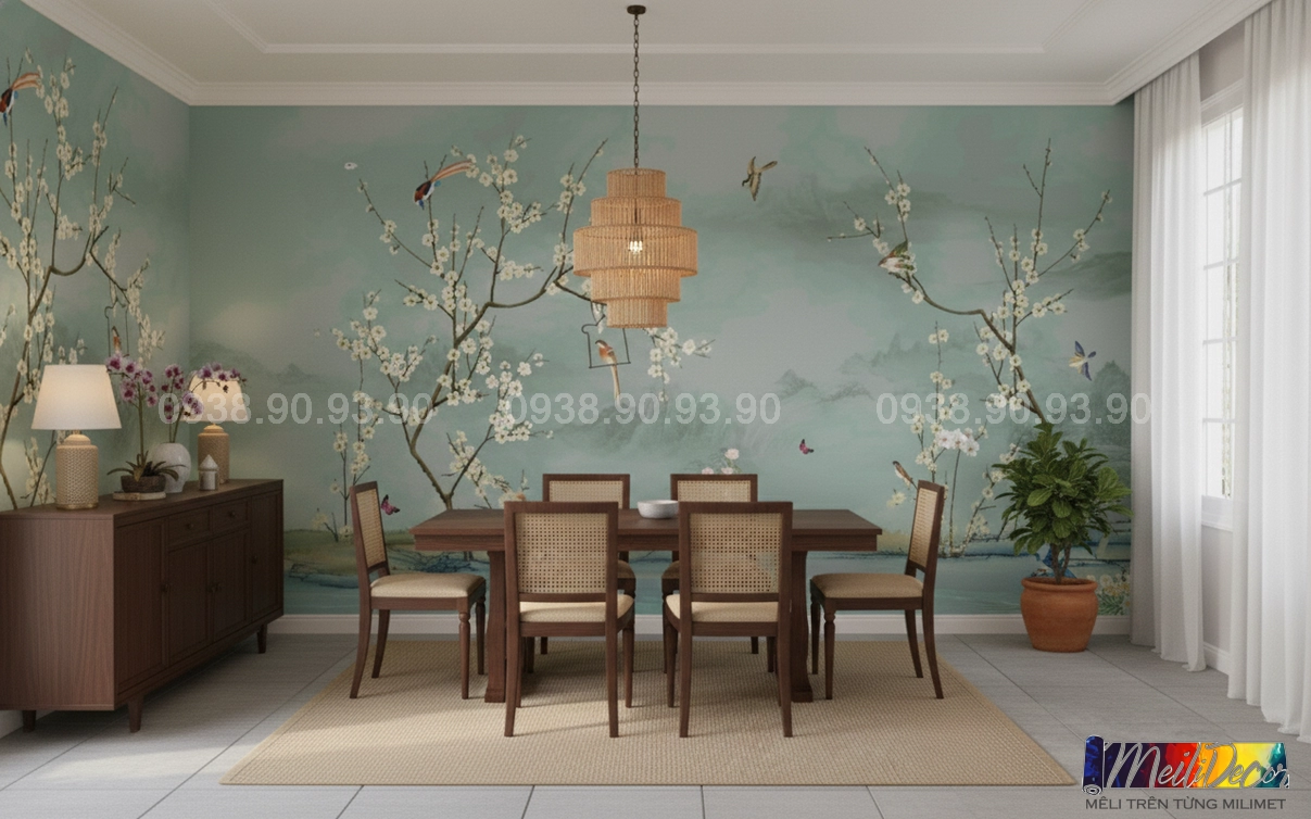 Meili Decor chuyên thi công tranh dán tường Indochine tại TP.HCM và các tỉnh lân cận, nhận in tranh theo kích thước thực tế, phù hợp cho nhà phố, căn hộ, nhà hàng, quán cafe, spa và nhiều không gian khác.