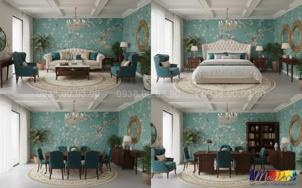 Meili Decor chuyên thi công tranh dán tường Indochine tại TP.HCM và các tỉnh lân cận, nhận in tranh theo kích thước thực tế, phù hợp cho nhà phố, căn hộ, nhà hàng, quán cafe, spa và nhiều không gian khác.