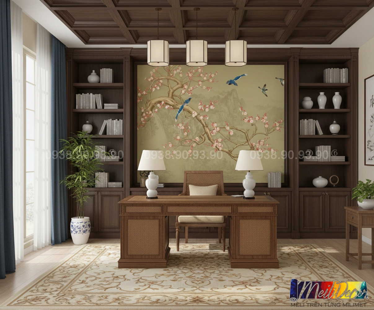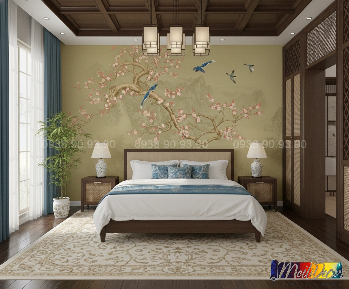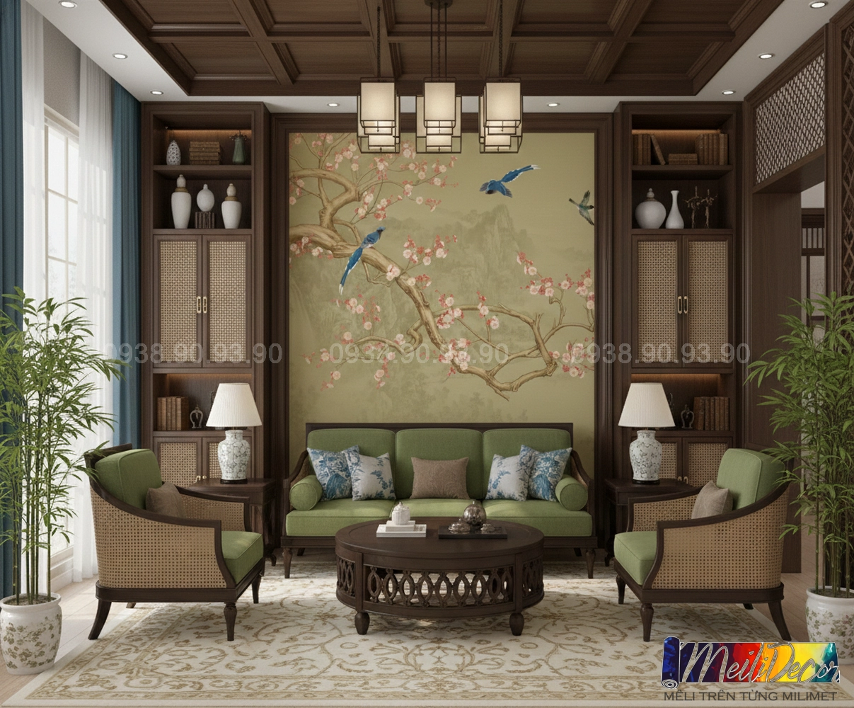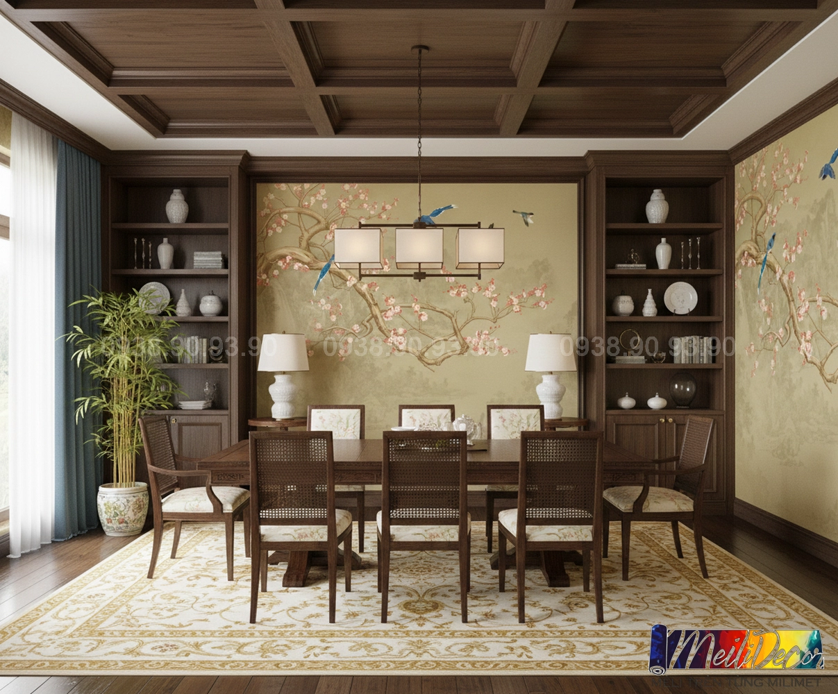 Meili Decor chuyên thi công tranh dán tường Indochine tại TP.HCM và các tỉnh lân cận, nhận in tranh theo kích thước thực tế, phù hợp cho nhà phố, căn hộ, nhà hàng, quán cafe, spa và nhiều không gian khác.