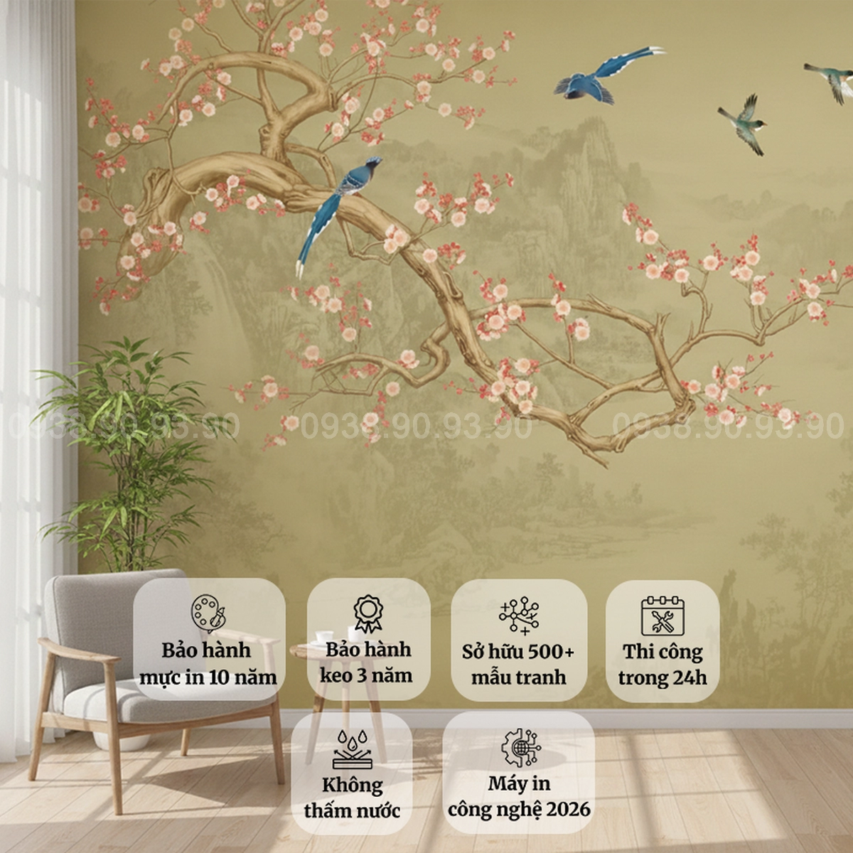 Kích thước: Nhận in theo kích thước thực tế từng mảng tường