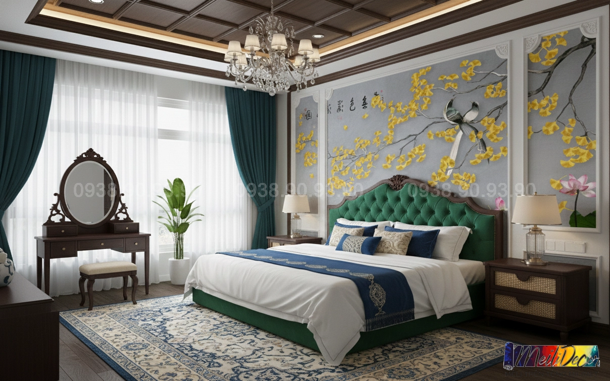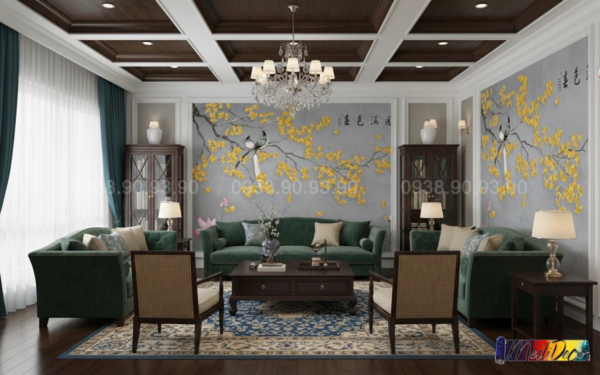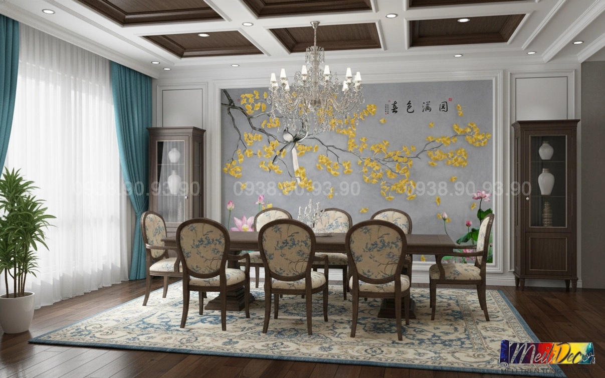 Meili Decor chuyên thi công tranh dán tường Indochine tại TP.HCM và các tỉnh lân cận, nhận in tranh theo kích thước thực tế, phù hợp cho nhà phố, căn hộ, nhà hàng, quán cafe, spa và nhiều không gian khác.