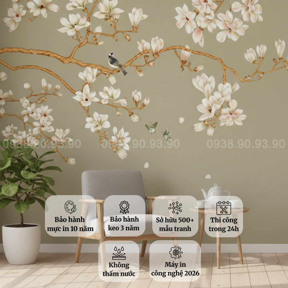 Kích thước: In theo kích thước thực tế từng mảng tường