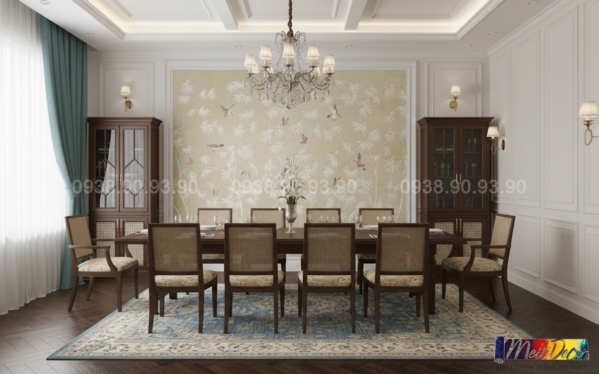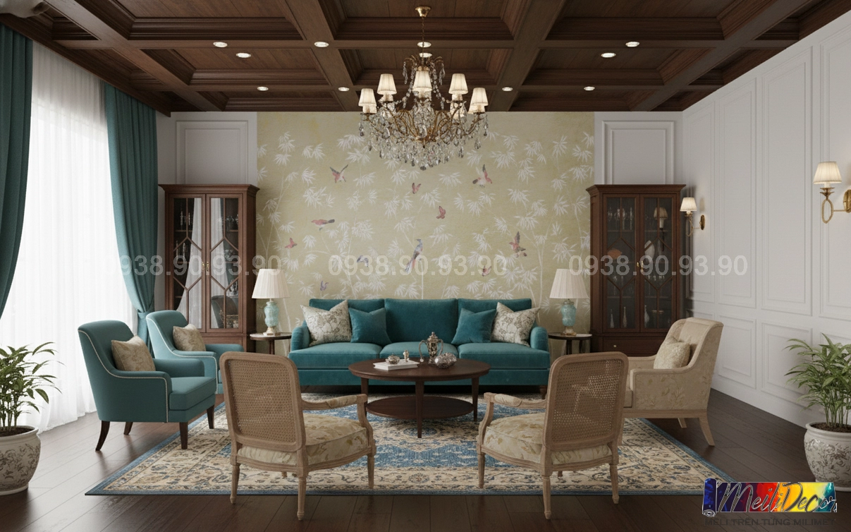 Meili Decor chuyên thi công tranh dán tường Indochine tại TP.HCM và các tỉnh lân cận, nhận in tranh theo kích thước thực tế, phù hợp cho nhà phố, căn hộ, nhà hàng, quán cafe, spa và nhiều không gian khác.