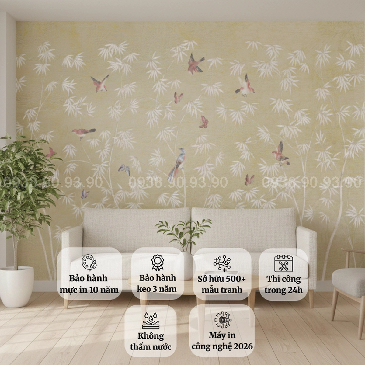 Kích thước: In theo kích thước thực tế từng mảng tường