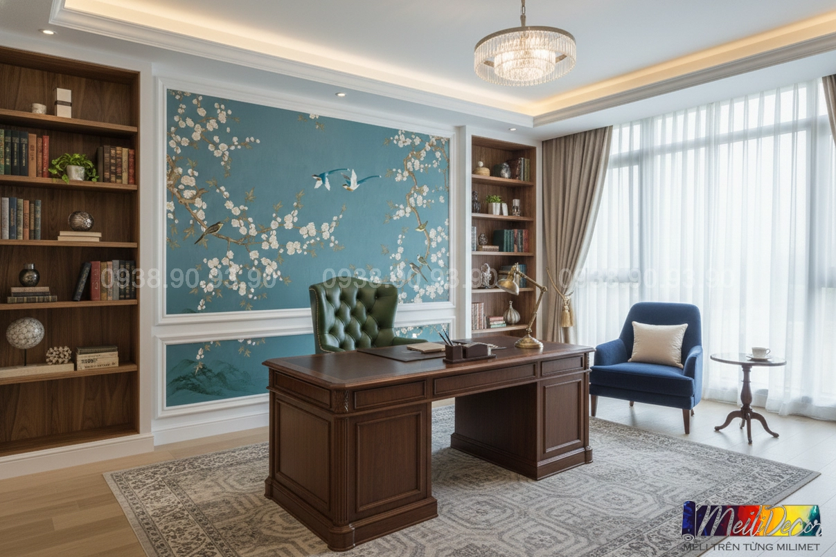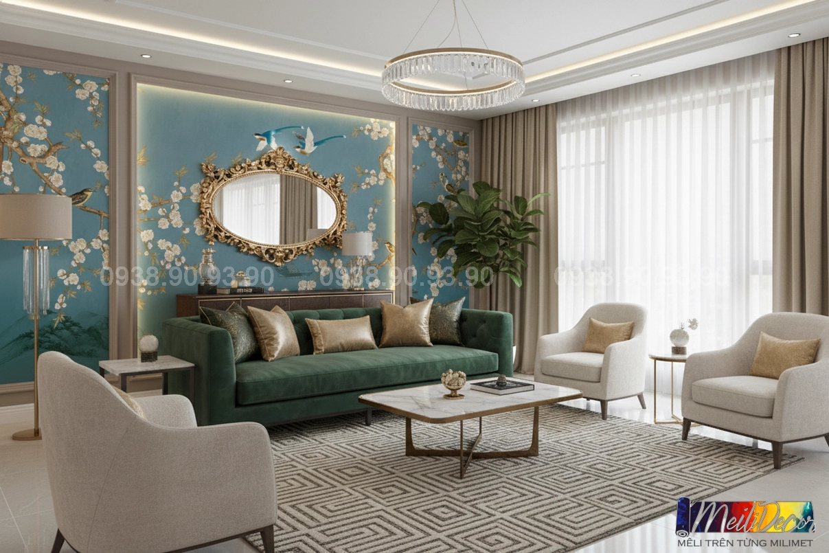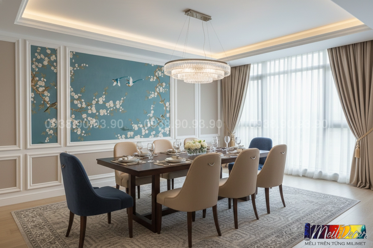 Meili Decor chuyên thi công tranh dán tường Indochine tại TP.HCM và các tỉnh lân cận, nhận in tranh theo kích thước thực tế, phù hợp cho nhà phố, căn hộ, nhà hàng, quán cafe, spa và nhiều không gian khác.