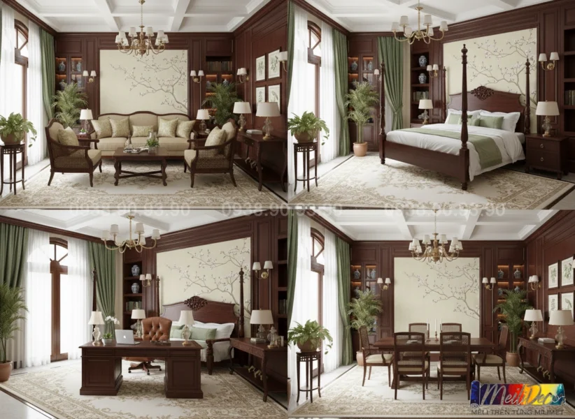 • Gam màu trầm ấm, phù hợp không gian Indochine