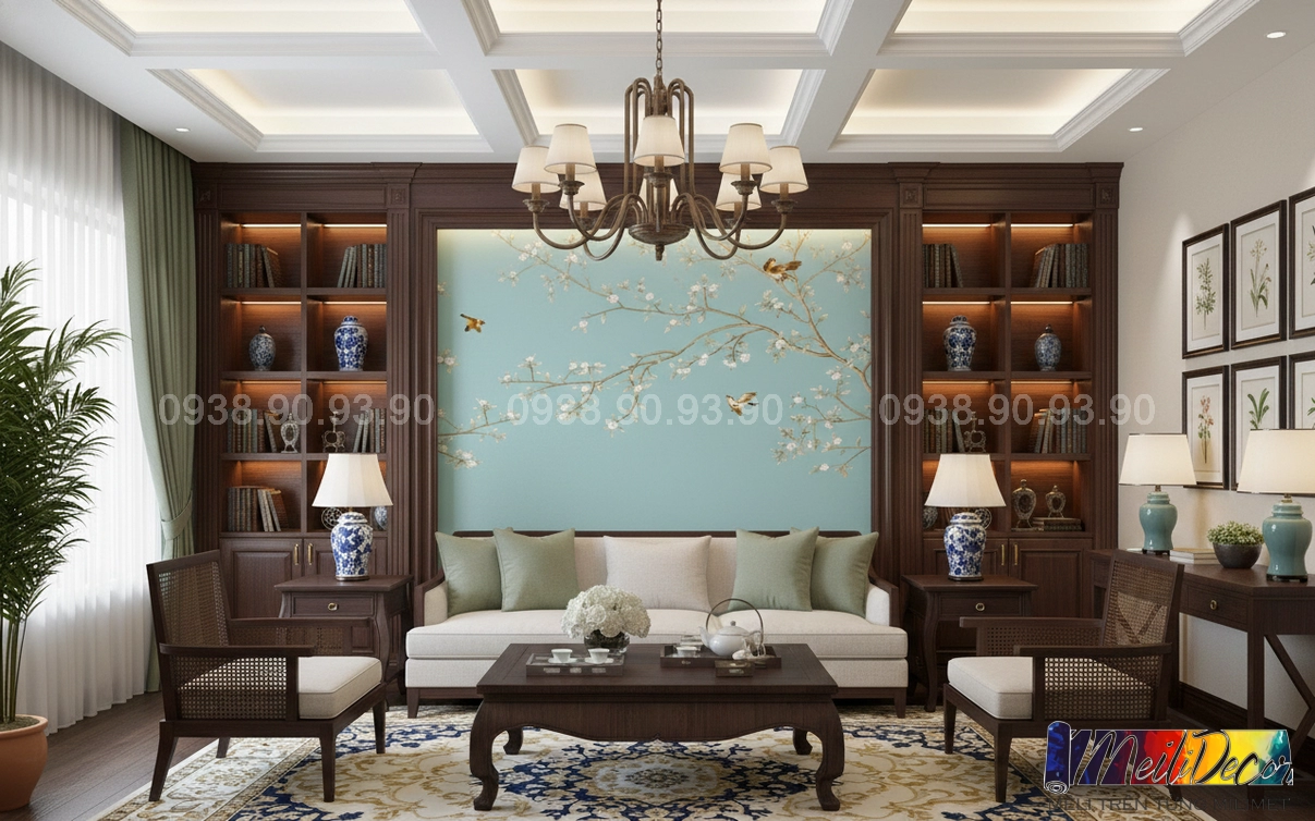 Meili Decor chuyên thi công tranh dán tường Indochine tại TP.HCM và các tỉnh lân cận, nhận in tranh theo kích thước thực tế cho nhà phố, căn hộ, nhà hàng, quán cafe, spa và nhiều không gian khác.