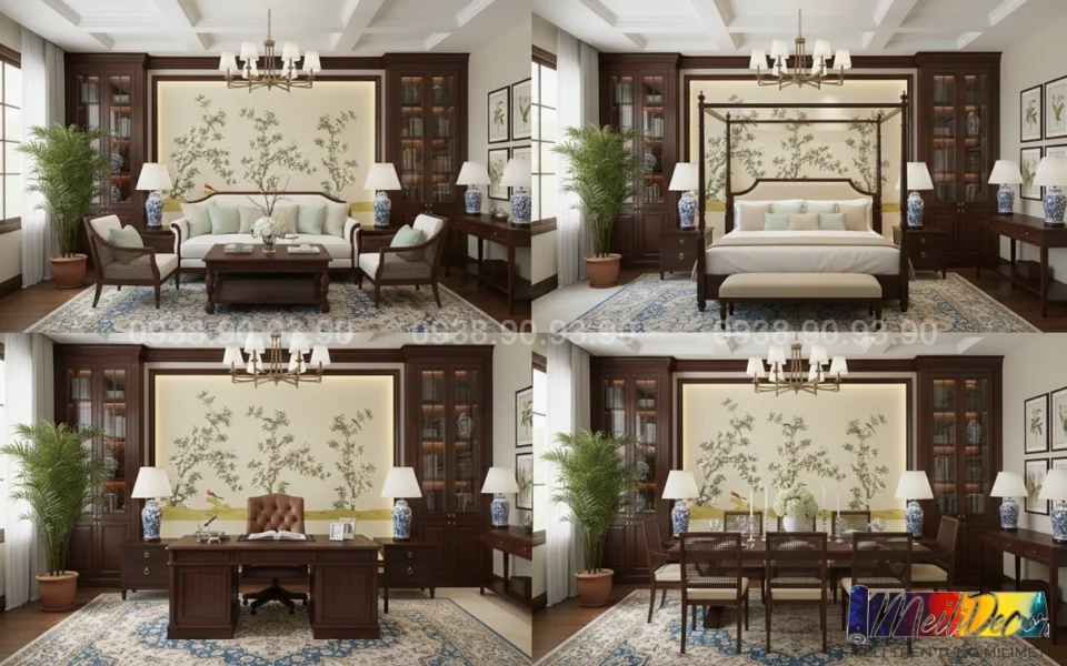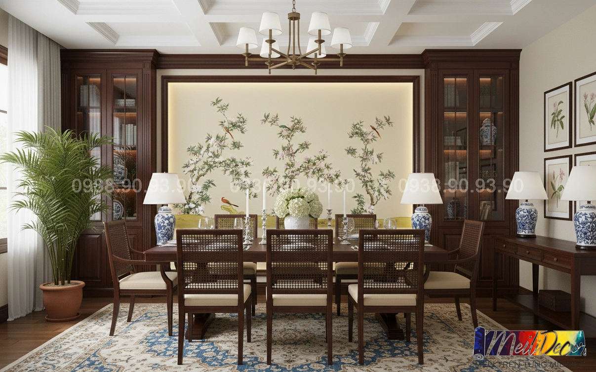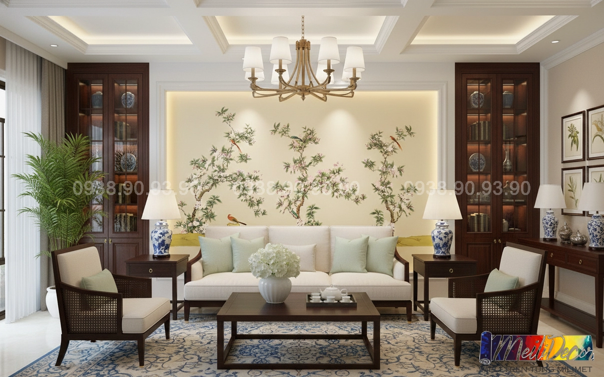 Meili Decor chuyên thi công tranh dán tường Indochine tại TP.HCM và các tỉnh lân cận, nhận in tranh theo kích thước thực tế cho nhà phố, căn hộ, nhà hàng, quán cafe, spa và nhiều loại hình không gian khác.