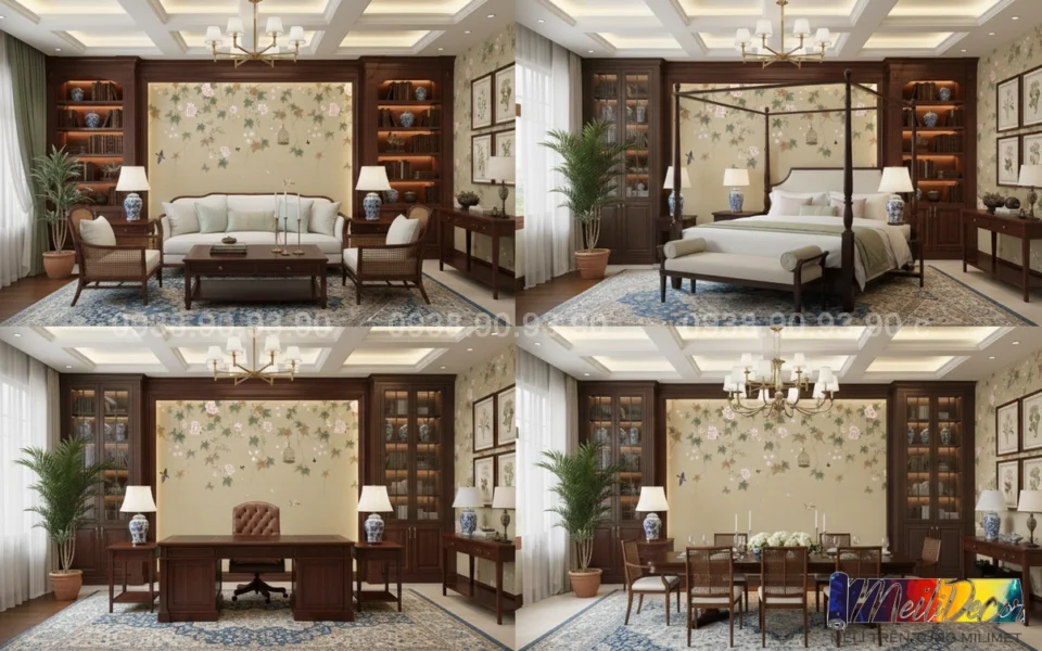 Meili Decor chuyên thi công tranh dán tường Indochine tại TP.HCM và các tỉnh lân cận, nhận in tranh theo kích thước thực tế, phù hợp cho nhà phố, căn hộ, nhà hàng, quán cafe, spa và nhiều không gian khác.