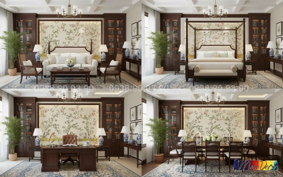 Tranh Indochine ML81122 là mẫu tranh dán tường phong cách Indochine mang sắc độ trầm ấm, thiên về sự cân bằng và chiều sâu. Thiết kế của tranh giúp điều tiết ánh sáng trong không gian, tạo cảm giác êm dịu và ổn định, phù hợp với những công trình theo đuổi vẻ đẹp Đông Dương tinh tế.