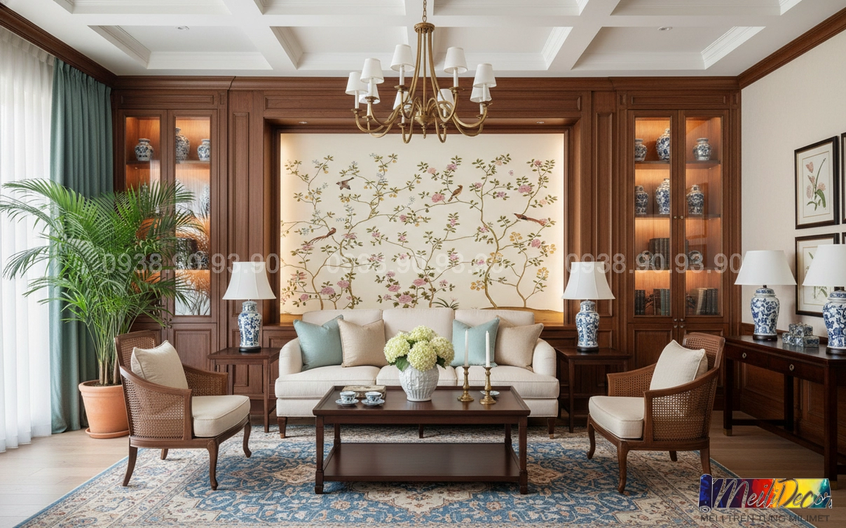 Meili Decor chuyên thi công tranh dán tường Indochine tại TP.HCM và các tỉnh lân cận, nhận in tranh theo kích thước thực tế, phù hợp cho nhà phố, căn hộ, nhà hàng, quán cafe, spa và nhiều không gian khác.