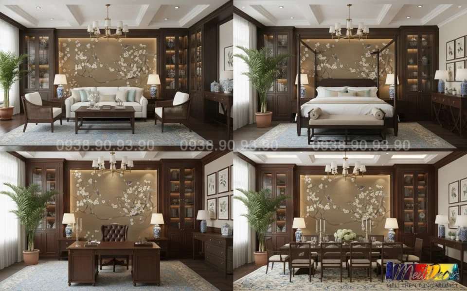 Meili Decor chuyên thi công tranh dán tường Indochine tại TP.HCM và các tỉnh lân cận, nhận in tranh theo kích thước thực tế, phù hợp cho nhà phố, căn hộ, nhà hàng, quán cafe, spa và nhiều không gian khác.