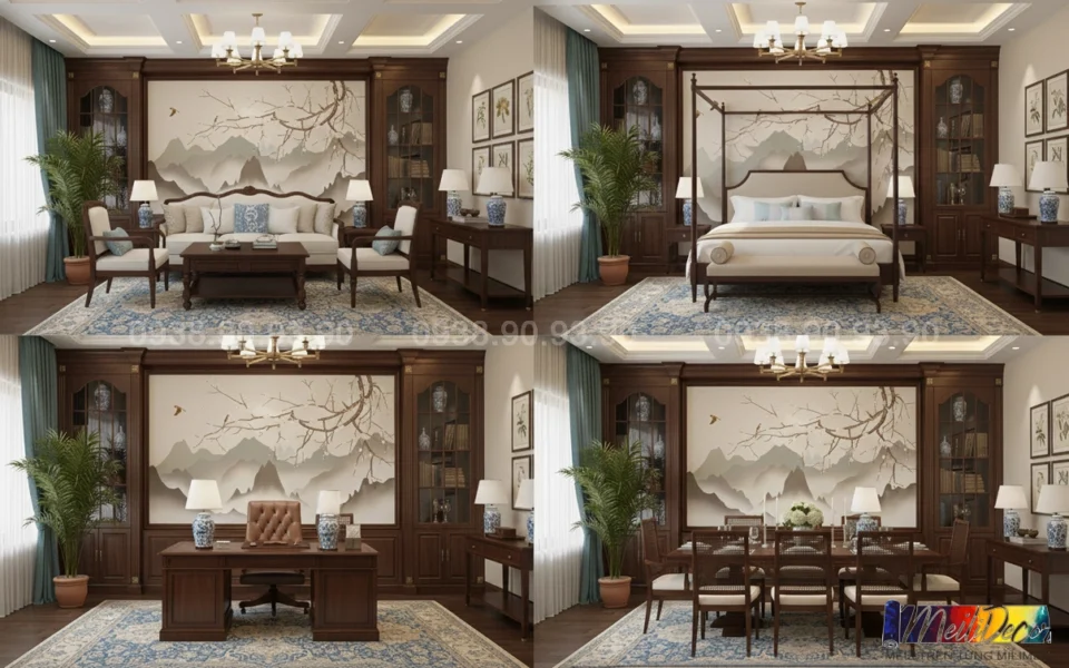 Meili Decor chuyên thi công tranh dán tường Indochine tại TP.HCM và các tỉnh lân cận, nhận in tranh theo kích thước thực tế, phù hợp cho nhà phố, căn hộ, nhà hàng, quán cafe, spa và nhiều không gian khác.