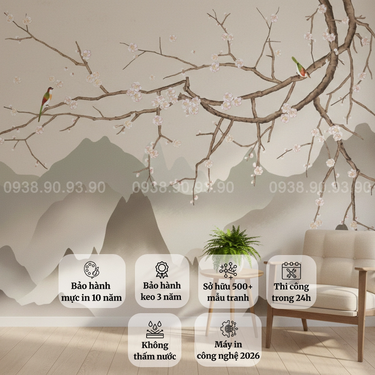 • Kích thước: In theo kích thước thực tế từng mảng tường