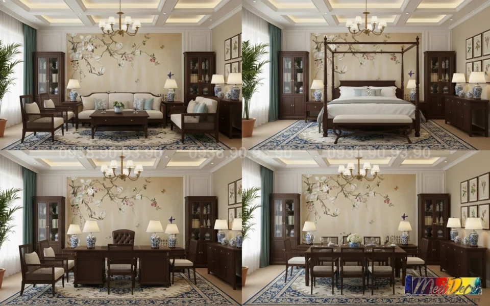 Meili Decor chuyên thi công tranh dán tường Indochine tại TP.HCM và các tỉnh lân cận, nhận in tranh theo kích thước thực tế, phù hợp cho nhà phố, căn hộ, nhà hàng, quán cafe, spa và nhiều không gian khác.