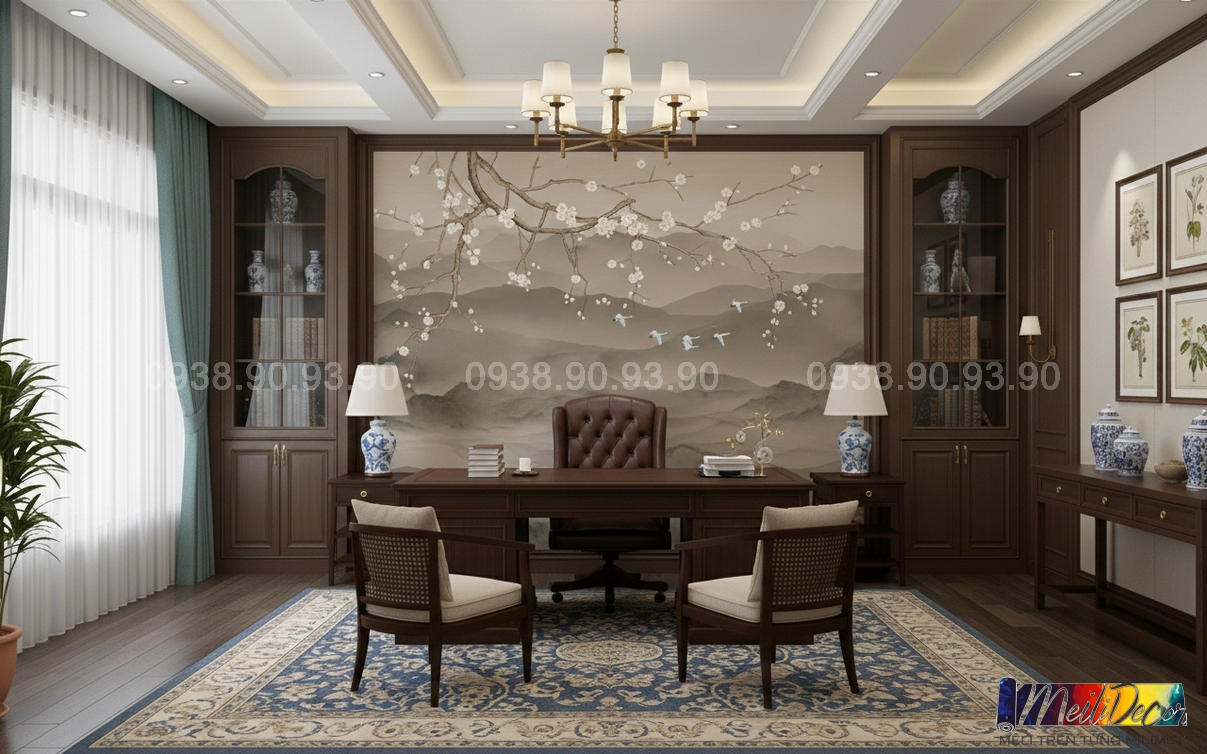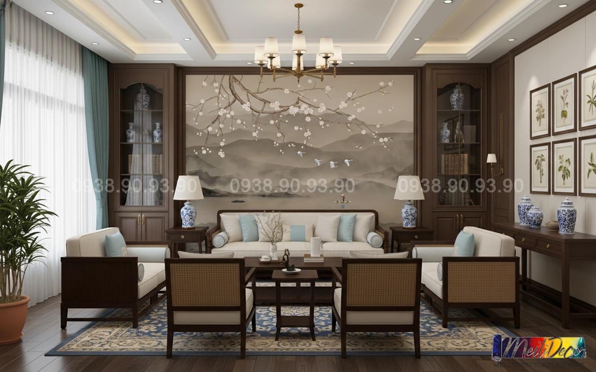 Meili Decor chuyên thi công tranh dán tường Indochine tại TP.HCM và các tỉnh lân cận, nhận in tranh theo kích thước thực tế, phù hợp cho nhà phố, căn hộ, nhà hàng, quán cafe, spa và nhiều không gian khác.