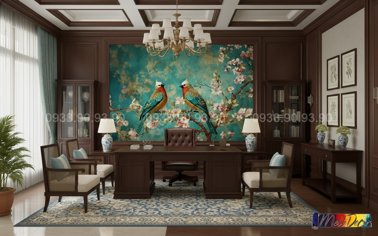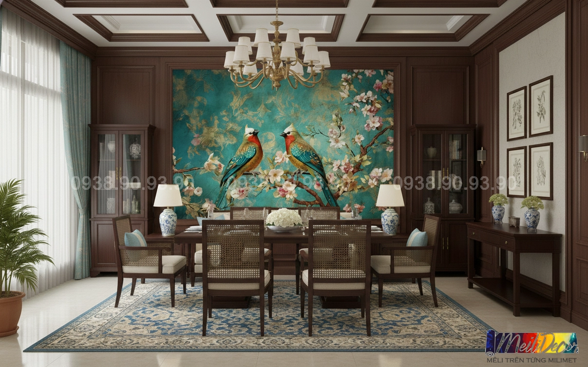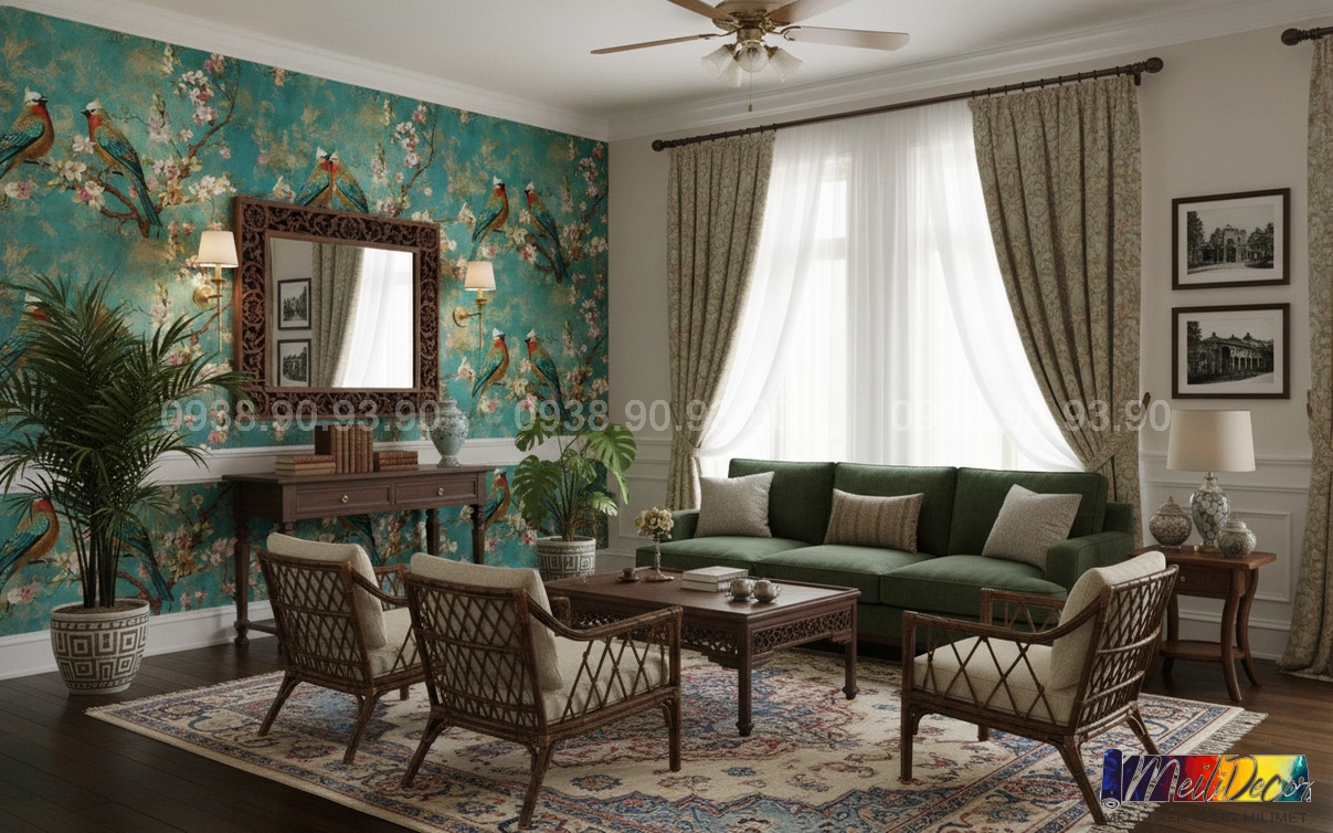 Meili Decor chuyên thi công tranh dán tường Indochine tại TP.HCM và các tỉnh lân cận, nhận in tranh theo kích thước thực tế, phù hợp cho nhà phố, căn hộ, nhà hàng, quán cafe, spa và nhiều không gian khác.