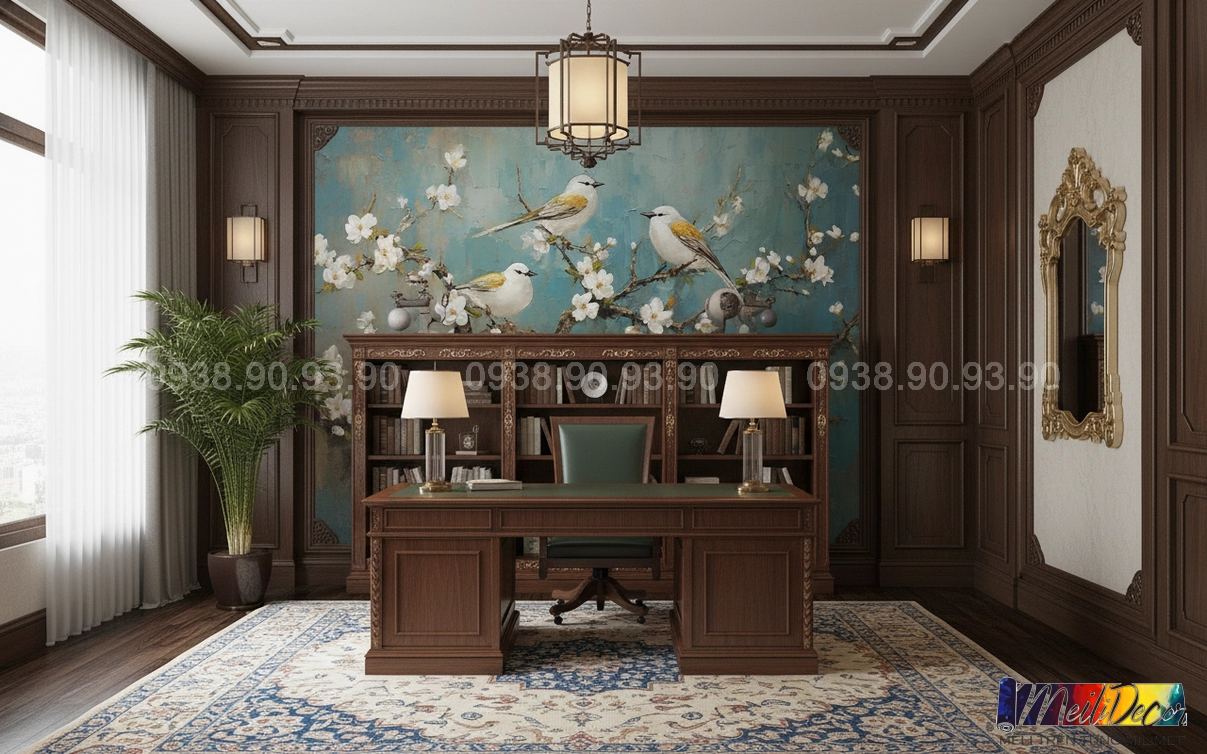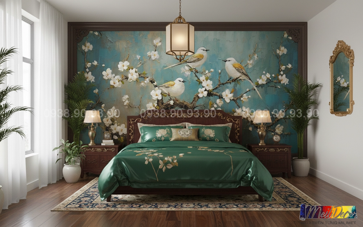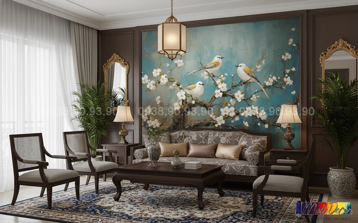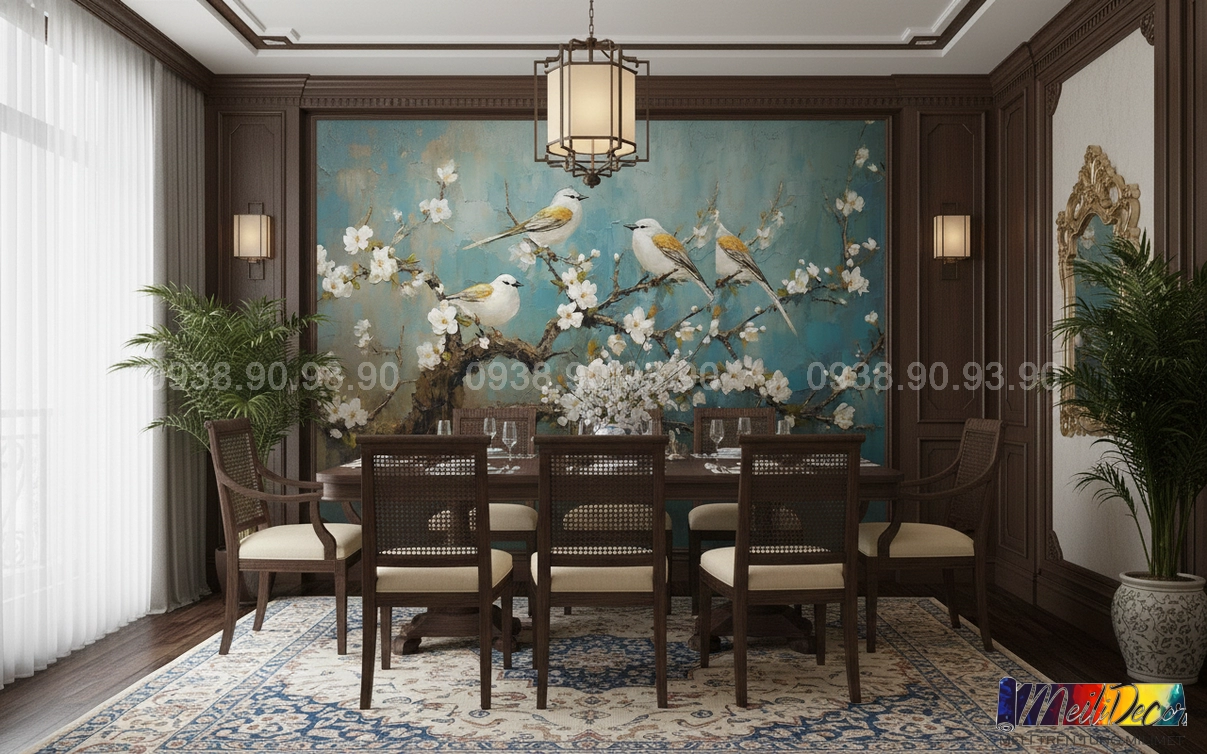 Meili Decor chuyên thi công tranh dán tường Indochine tại TP.HCM và các tỉnh lân cận, nhận in theo kích thước thực tế, phù hợp cho nhà phố, căn hộ, nhà hàng, quán cafe, spa và nhiều không gian khác.