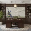 ML81140 đóng vai trò như một lớp nền dẫn sáng. Khi kết hợp cùng ánh đèn vàng, nội thất gỗ tự nhiên và các vật liệu mộc, tranh giúp không gian có chiều sâu hơn, giảm cảm giác phẳng và làm nổi bật các lớp không gian trước – sau.