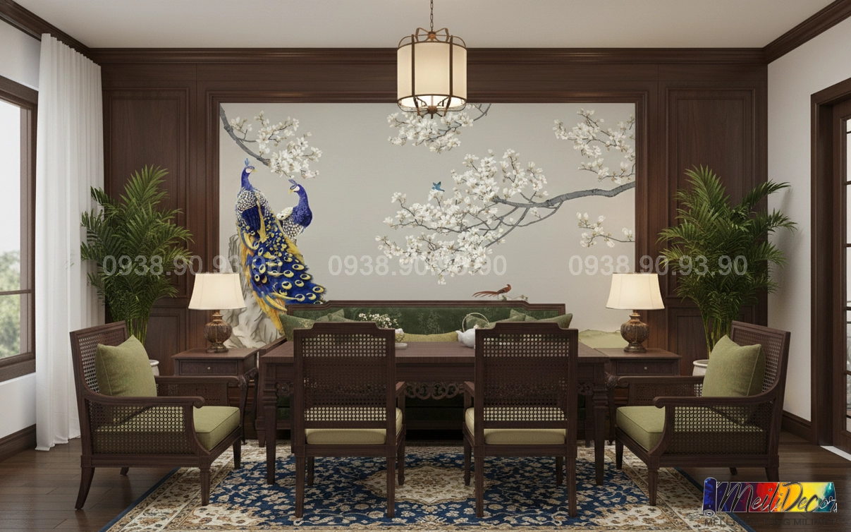 Meili Decor chuyên thi công tranh dán tường Indochine tại TP.HCM và các tỉnh lân cận, nhận in tranh theo kích thước thực tế cho nhà phố, căn hộ, nhà hàng, quán cafe, spa và nhiều không gian khác.