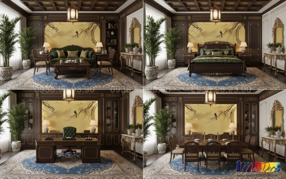 Meili Decor chuyên thi công tranh dán tường Indochine tại TP.HCM và các tỉnh lân cận, nhận in tranh theo kích thước thực tế, phù hợp cho nhà phố, căn hộ, nhà hàng, quán cafe, spa và nhiều không gian khác.