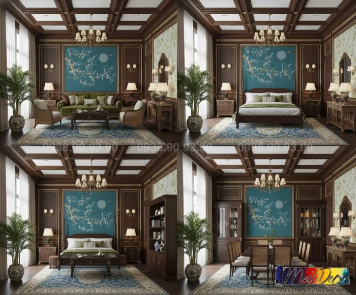 Meili Decor chuyên thi công tranh dán tường Indochine tại TP.HCM và các tỉnh lân cận, nhận in tranh theo kích thước thực tế, phù hợp cho nhà phố, căn hộ, nhà hàng, quán cafe, spa và nhiều không gian khác.