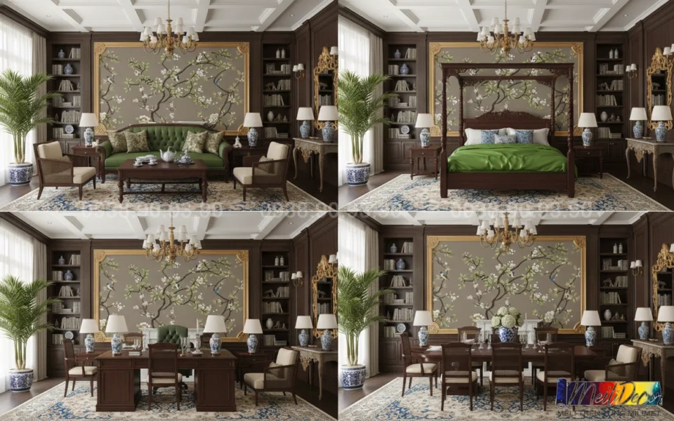 Meili Decor chuyên thi công tranh dán tường Indochine tại TP.HCM và các tỉnh lân cận, nhận in theo kích thước thực tế cho nhà phố, căn hộ, nhà hàng, quán cafe, spa và nhiều không gian khác.