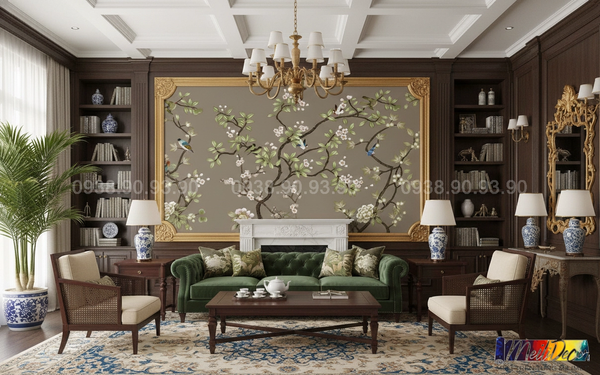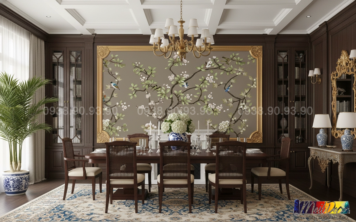 Meili Decor chuyên thi công tranh dán tường Indochine tại TP.HCM và các tỉnh lân cận, nhận in theo kích thước thực tế cho nhà phố, căn hộ, nhà hàng, quán cafe, spa và nhiều không gian khác.
