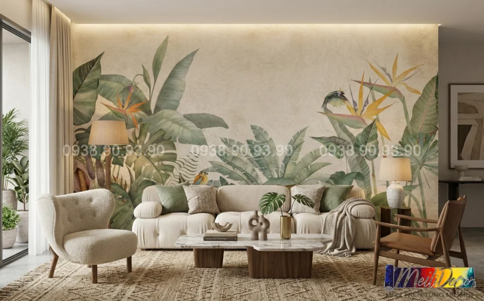 Việc sử dụng tranh dán tường Tropical giúp tiết kiệm chi phí trang trí mà vẫn đảm bảo hiệu quả thẩm mỹ cao.