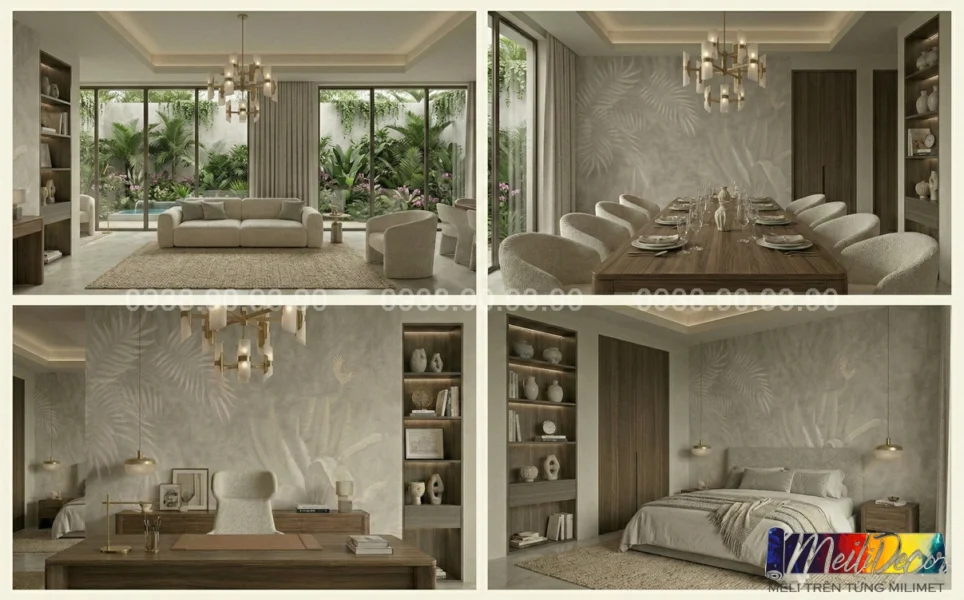ML81163 đặc biệt phù hợp cho mảng tường lớn như phía sau sofa, khu vực tiếp khách hoặc đầu giường phòng ngủ. Bố cục có lớp trước – lớp sau giúp tăng cảm giác chiều sâu, làm căn phòng trông rộng và có sức sống hơn.
