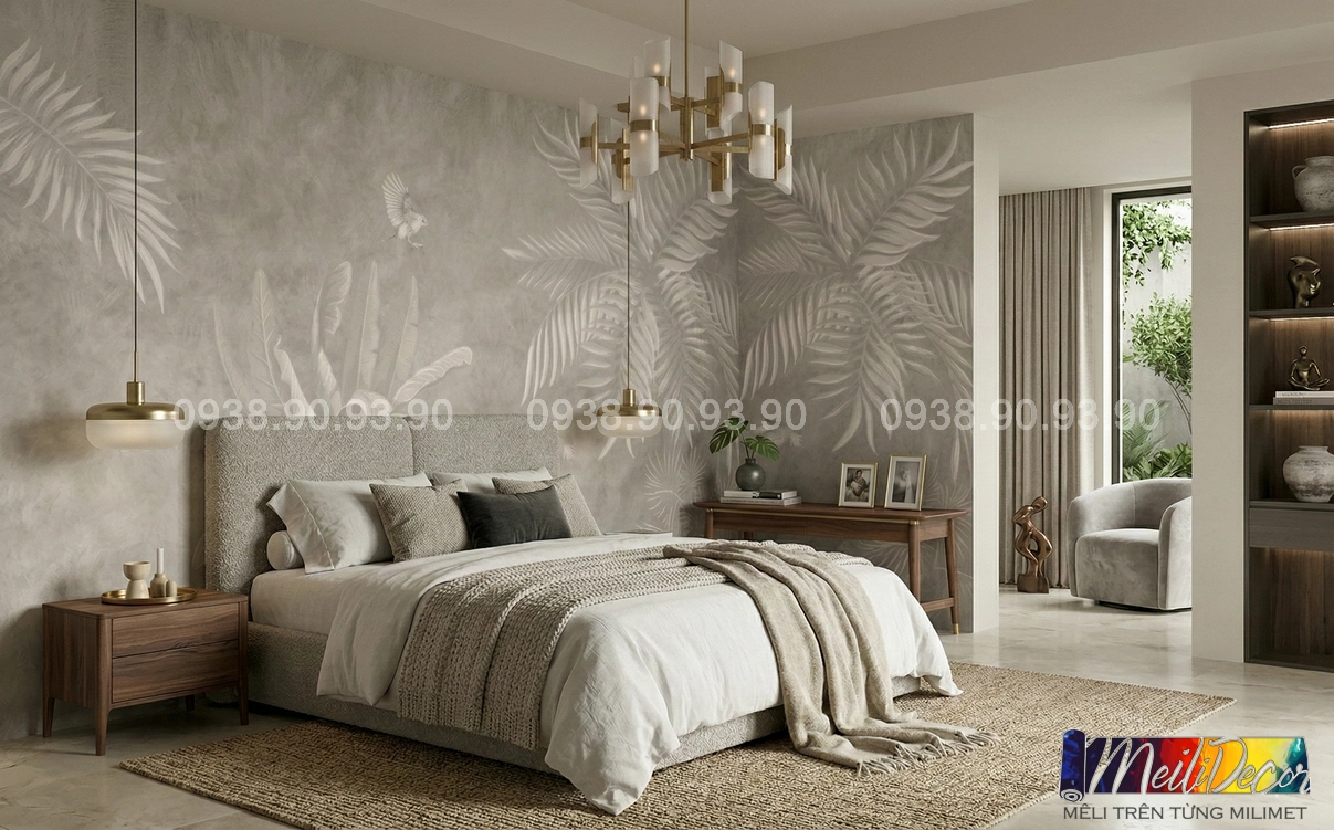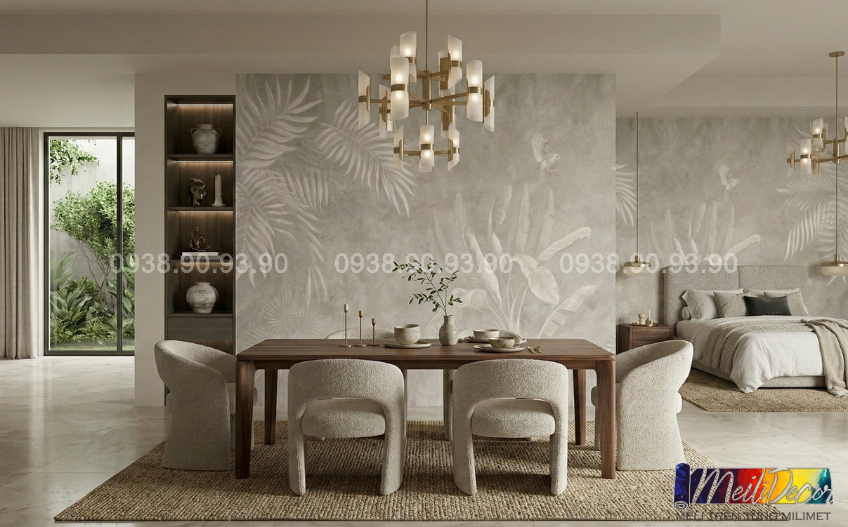 Meili Decor chuyên thi công tranh dán tường Indochine tại TP.HCM và các tỉnh lân cận, nhận in theo kích thước thực tế cho nhà phố, căn hộ, nhà hàng, quán cafe, spa và nhiều không gian khác.