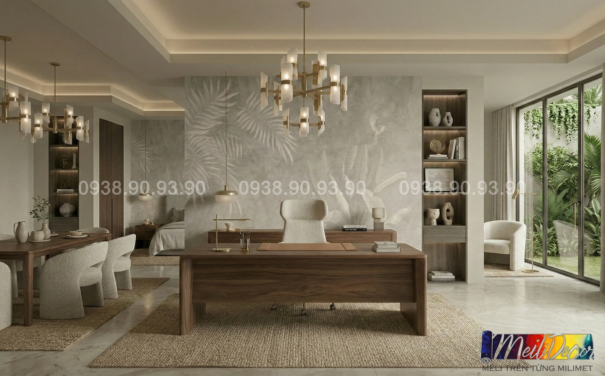ML81163 đặc biệt phù hợp cho mảng tường lớn như phía sau sofa, khu vực tiếp khách hoặc đầu giường phòng ngủ. Bố cục có lớp trước – lớp sau giúp tăng cảm giác chiều sâu, làm căn phòng trông rộng và có sức sống hơn.