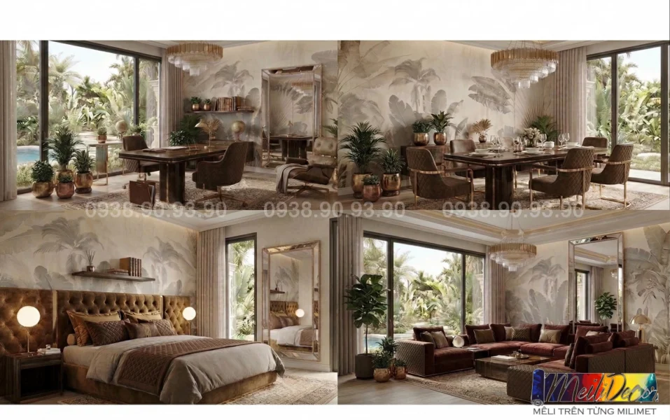 Meili Decor chuyên thi công tranh dán tường Indochine tại TP.HCM và các tỉnh lân cận, nhận in theo kích thước thực tế cho nhà phố, căn hộ, nhà hàng, quán cafe, spa và nhiều không gian khác.