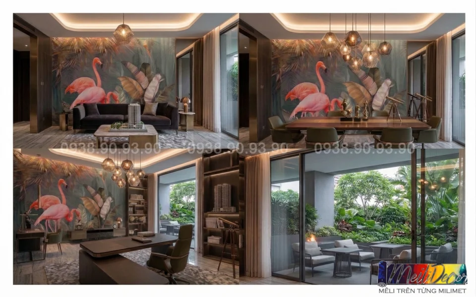 Meili Decor chuyên thi công tranh dán tường Indochine tại TP.HCM và các tỉnh lân cận, nhận in theo kích thước thực tế cho nhà phố, căn hộ, nhà hàng, quán cafe, spa và nhiều không gian khác.