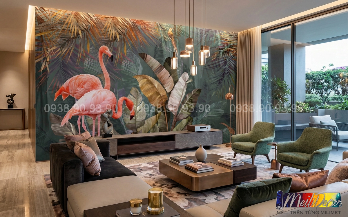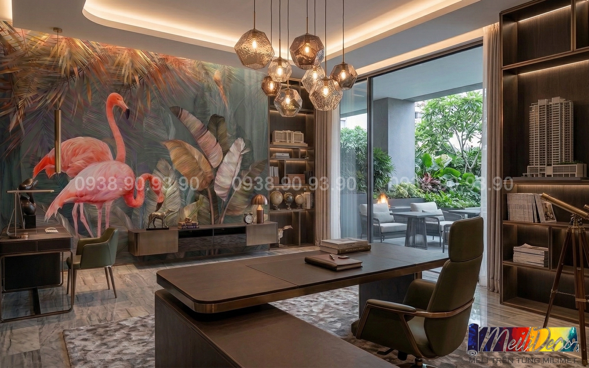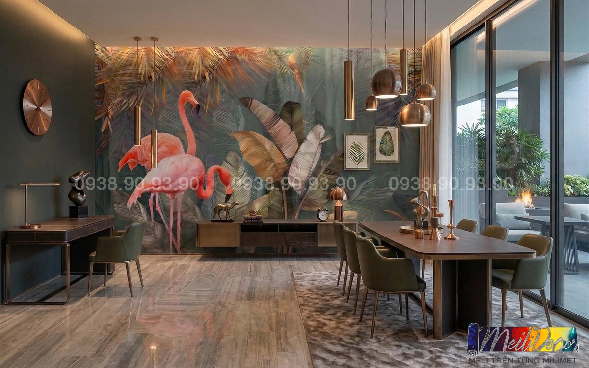 Meili Decor chuyên thi công tranh dán tường Indochine tại TP.HCM và các tỉnh lân cận, nhận in theo kích thước thực tế cho nhà phố, căn hộ, nhà hàng, quán cafe, spa và nhiều không gian khác.
