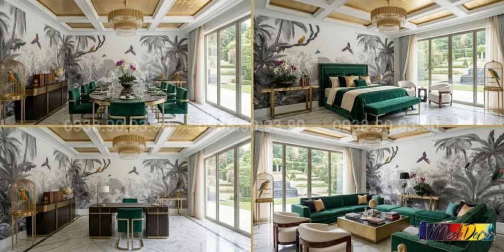 Meili Decor chuyên thi công tranh dán tường Indochine tại TP.HCM và các tỉnh lân cận, nhận in theo kích thước thực tế cho nhà phố, căn hộ, nhà hàng, quán cafe, spa và nhiều không gian khác.