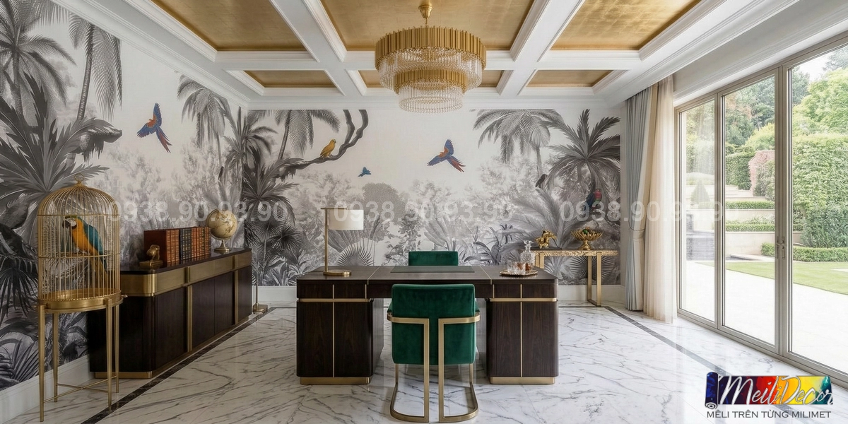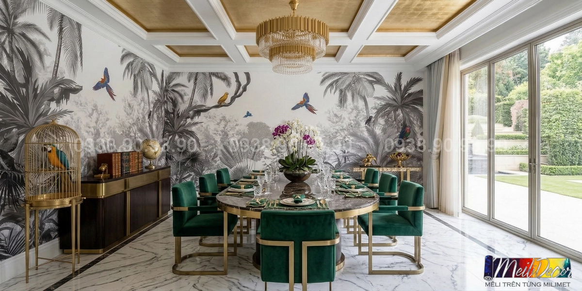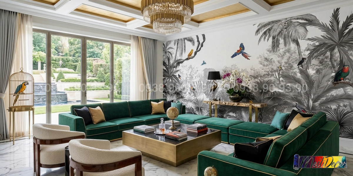 Meili Decor chuyên thi công tranh dán tường Indochine tại TP.HCM và các tỉnh lân cận, nhận in theo kích thước thực tế cho nhà phố, căn hộ, nhà hàng, quán cafe, spa và nhiều không gian khác.