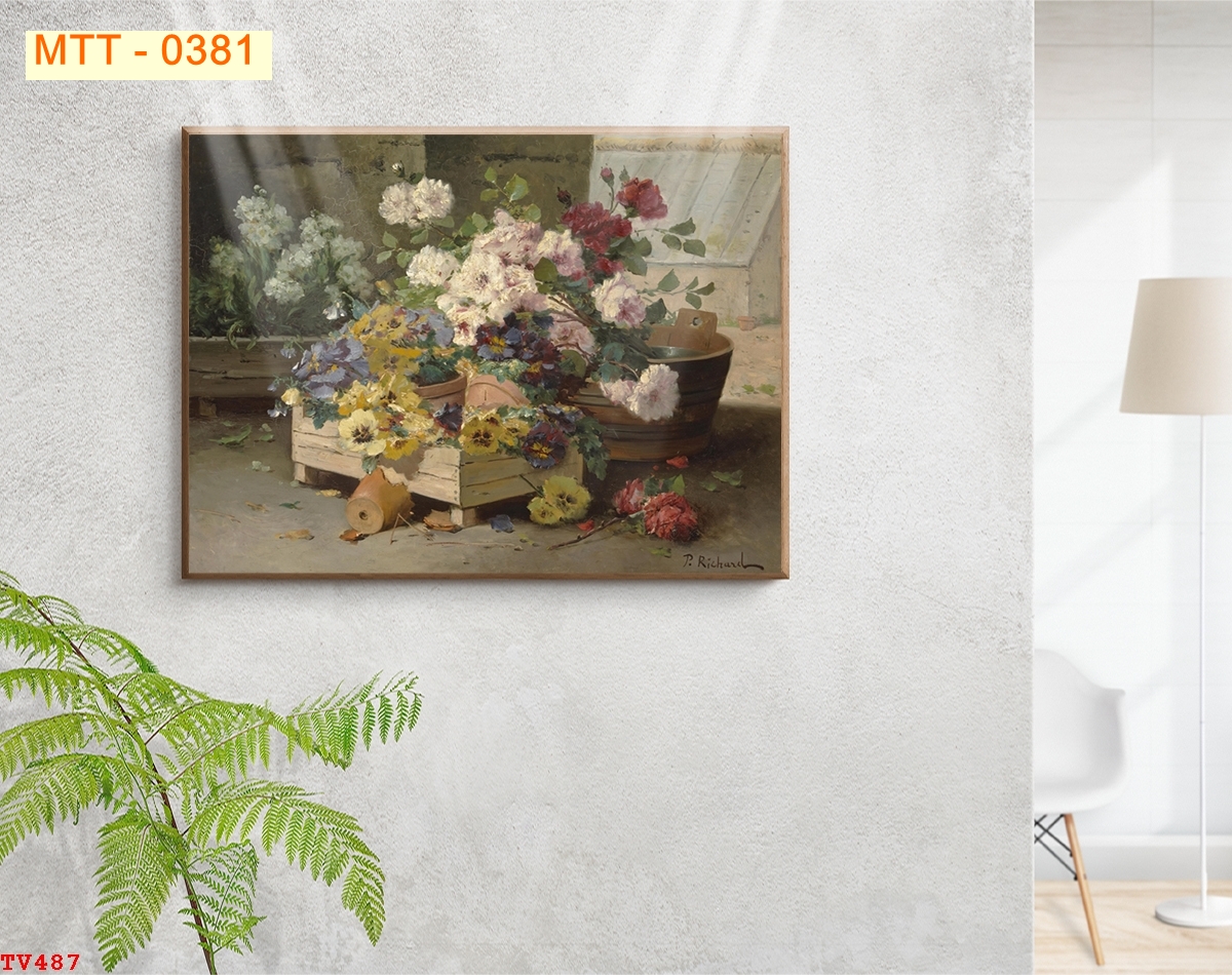 - Tranh hoa: Mang lại cảm giác tươi mới, dễ phối hợp với nhiều nội thất.