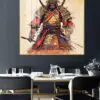 Tranh treo tường Samurai kết hợp nghệ thuật Nhật Bản và nét hiện đại. Hình ảnh tượng trưng sức mạnh, ý chí kiên cường.